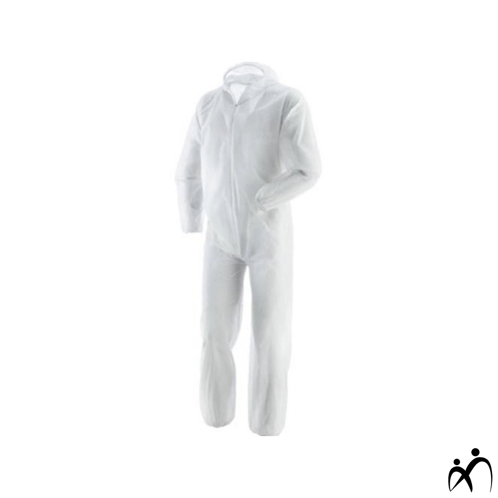 Tute in Laminex composto da Polipropilene (PP) da 45gr/mq e film di Polietilene (PE) idrorepellente e resistente. Indumento di protezione contro agenti infettivi e biologici. Non sterile. Maniche lunghe con elastici ai polsi e alle caviglie.